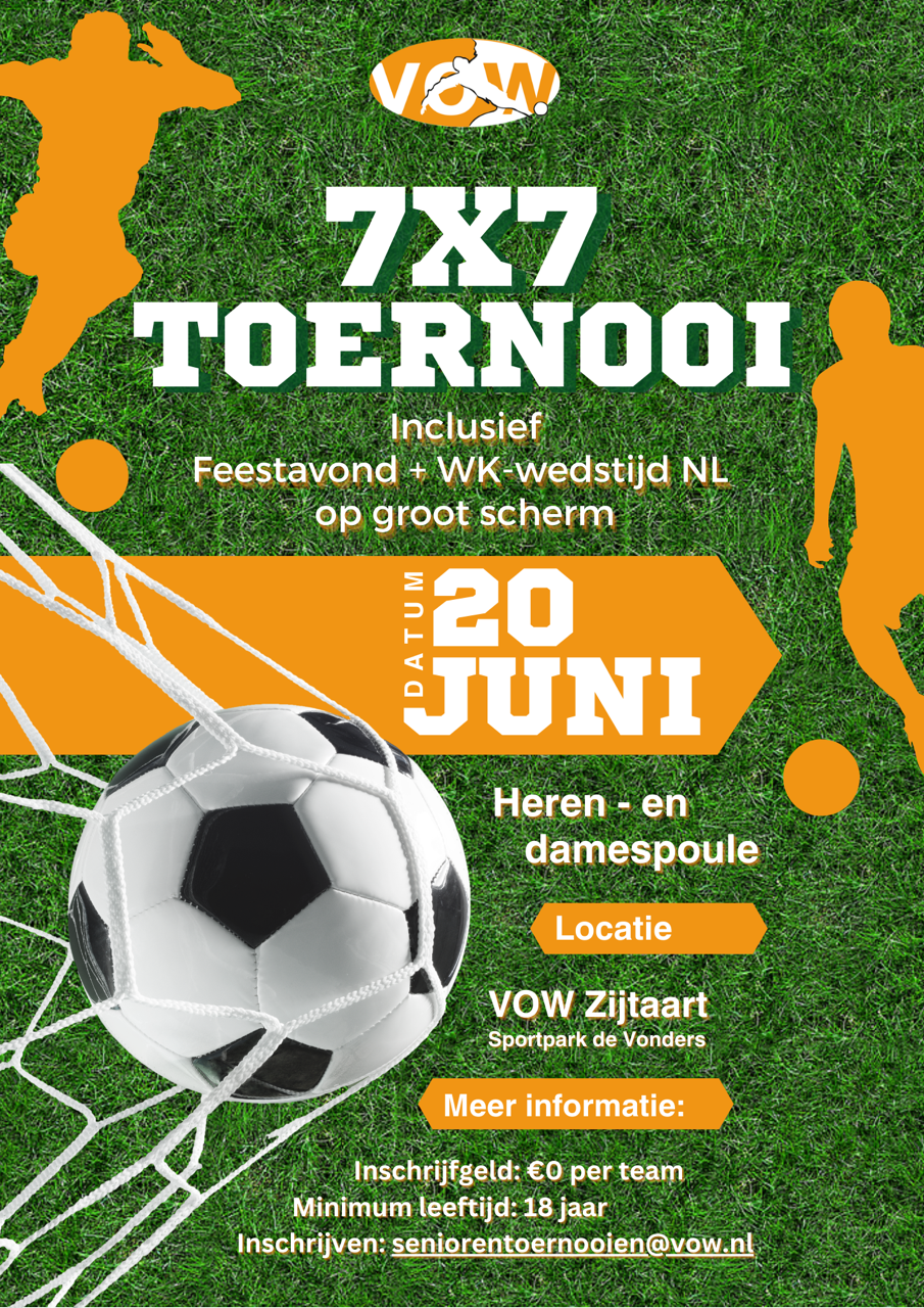 Zaterdag 20 juni 2026 organiseren wij een 7x7 toernooi