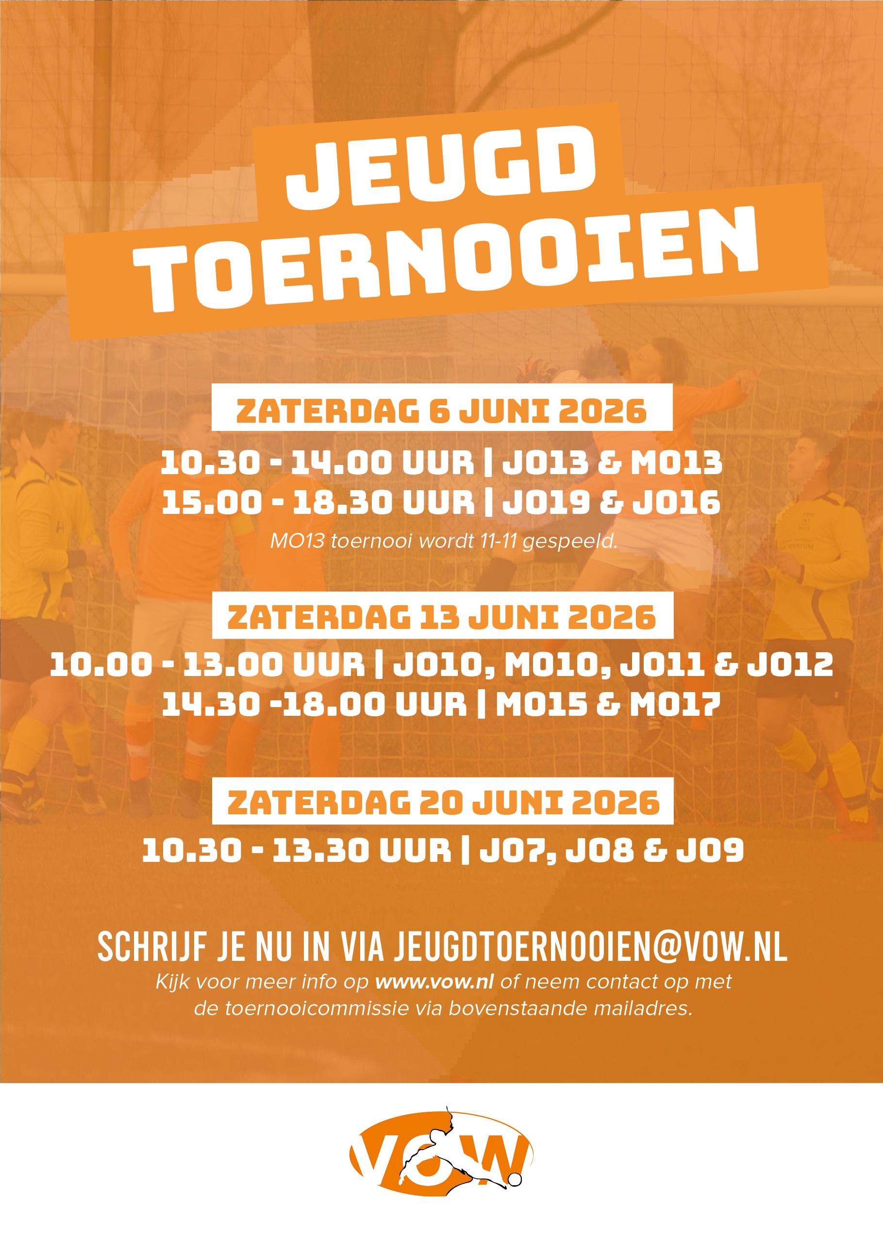 Doe jij mee met jouw team? Schrijf je dan nu in via jeugdtoernooien@vow.nl