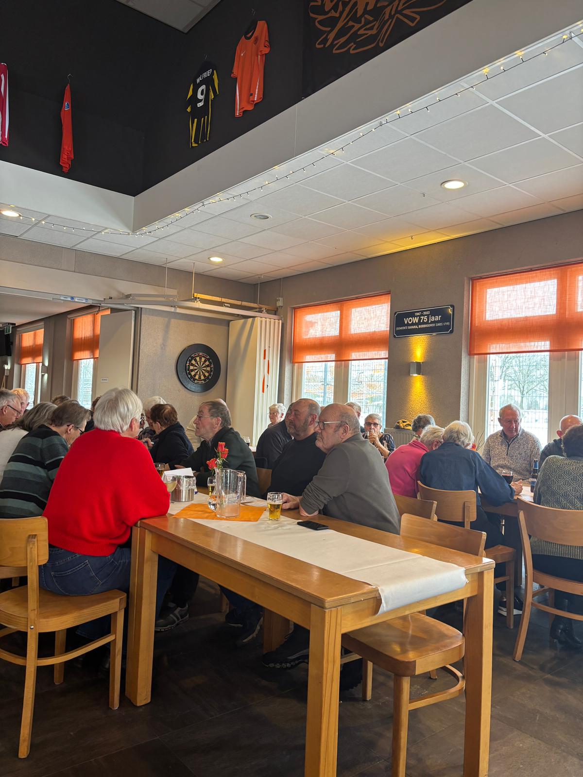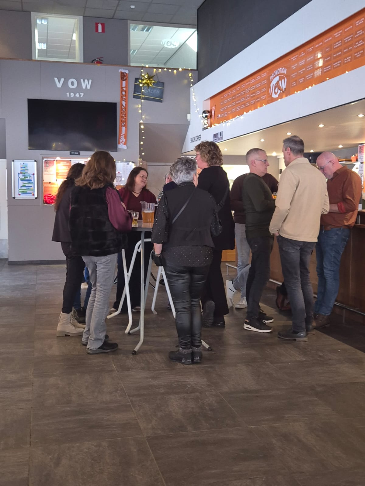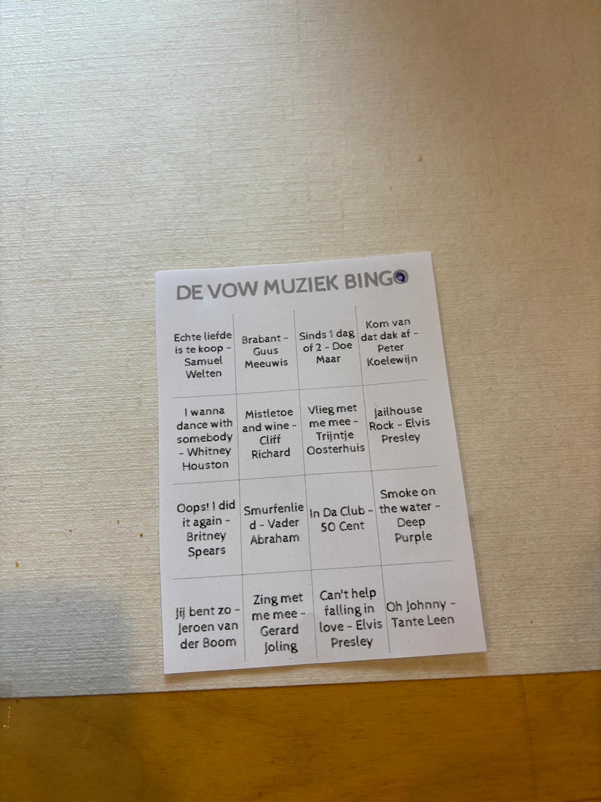 Na afloop van de brunch werd het spel Hitser gespeeld, georganiseerd door Nienke Zoete. Alle aanwezigen ontvingen een bingokaart met muziek en er werden liedjes gedraaid uit de periode van 1947 (het oprichtingsjaar van VOW) tot en met 2025. Het zorgde voor veel plezier, herkenning en gezelligheid. Ook Nienke werd nadrukkelijk bedankt voor de goede voorbereiding en organisatie van deze geslaagde activiteit. De middag werd afgesloten met een gezellige nieuwjaarsreceptie.