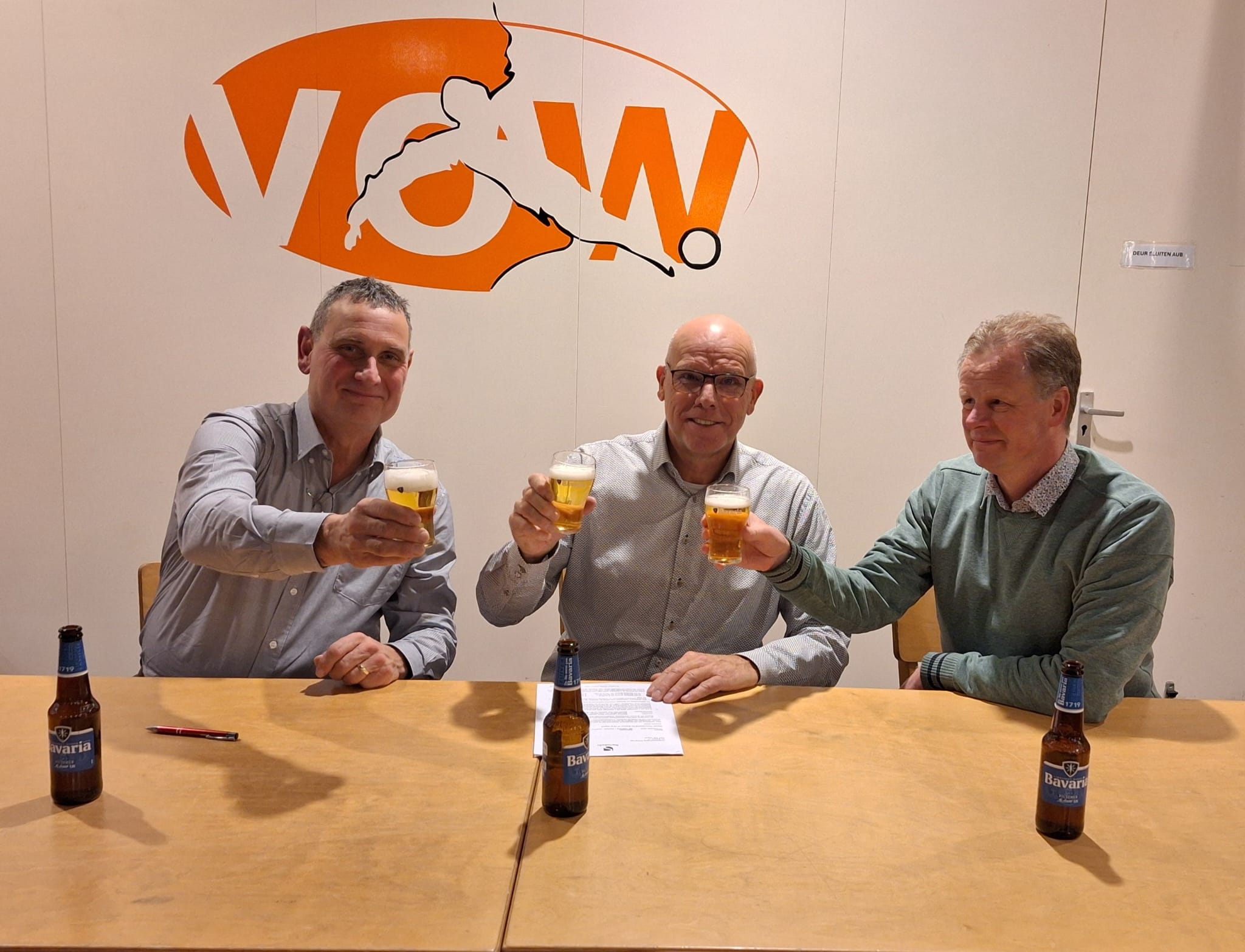 Goed nieuws vanuit de kantine: het contract met Bavaria wordt met maar liefst vijf jaar verlengd. Onder het toeziend oog van penningmeester Maurits Vos zetten voorzitter Marcel Adriaans en Eric Matthijssen namens Bavaria hun handtekening onder het nieuwe contract. Na het officiële moment werd er natuurlijk geproost op de voortzetting van deze prettige samenwerking.